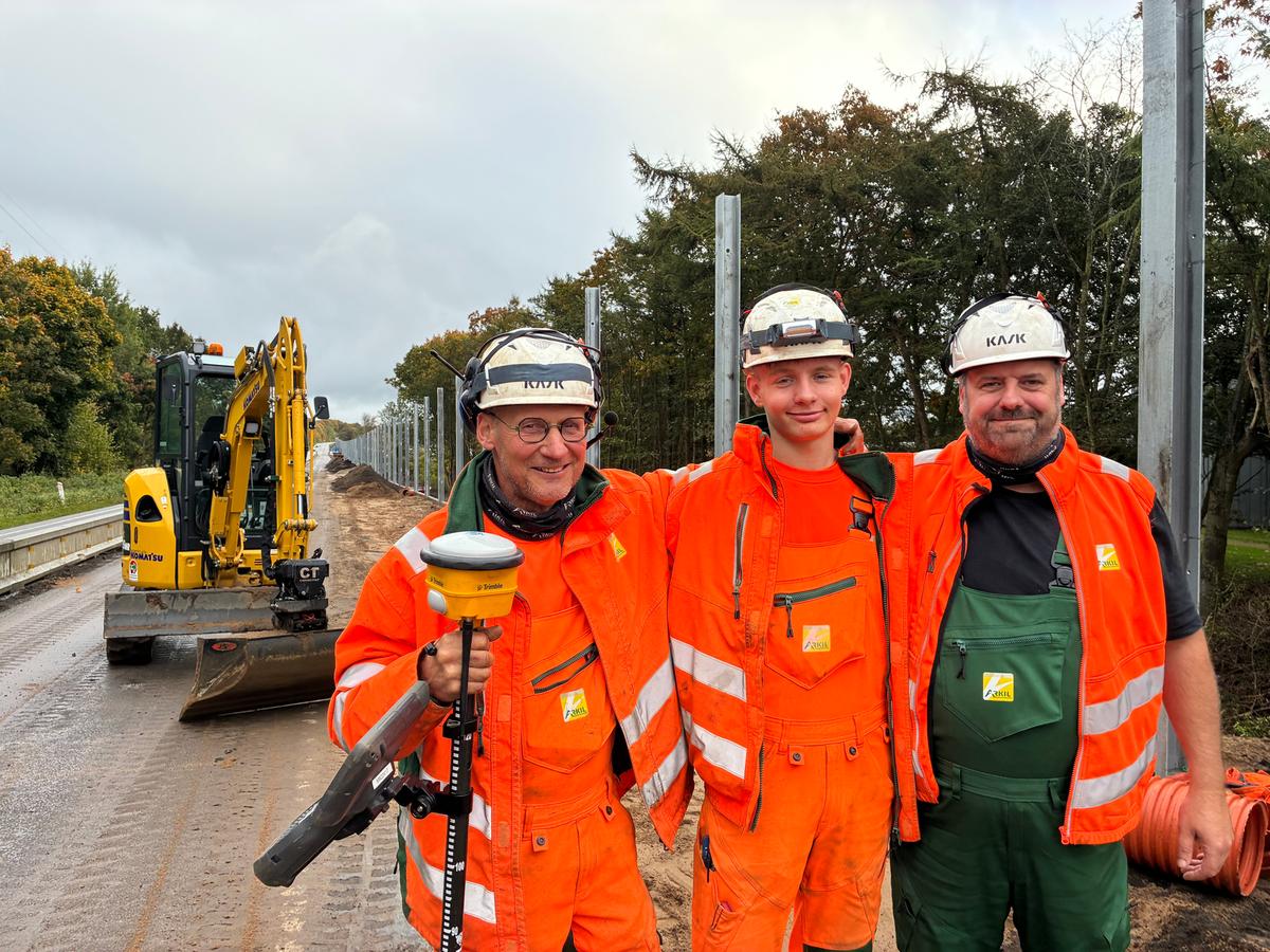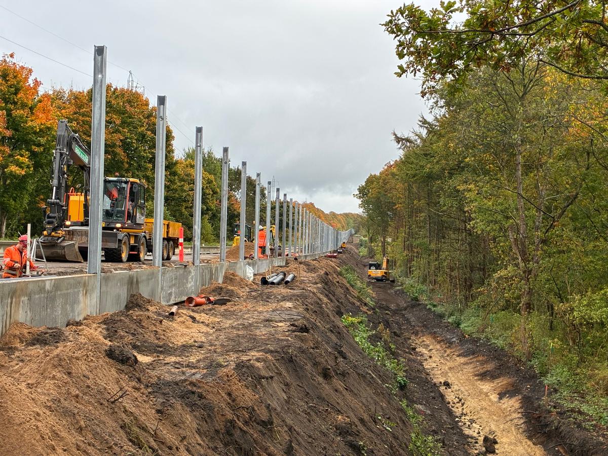 “Vi skal jo lave støjskærme, og vores arbejde lige nu er jordarbejdet – afvanding og gøre klar til beplantning,” fortæller han og kigger ud over strækningen, hvor stålsøjlerne allerede står på række.