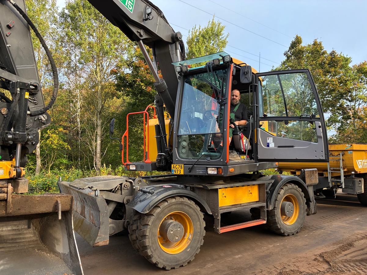 Han har mest haft erfaring med klassiske store gravemaskiner. Men nu er der hjul på, og det er faktisk helt okay.