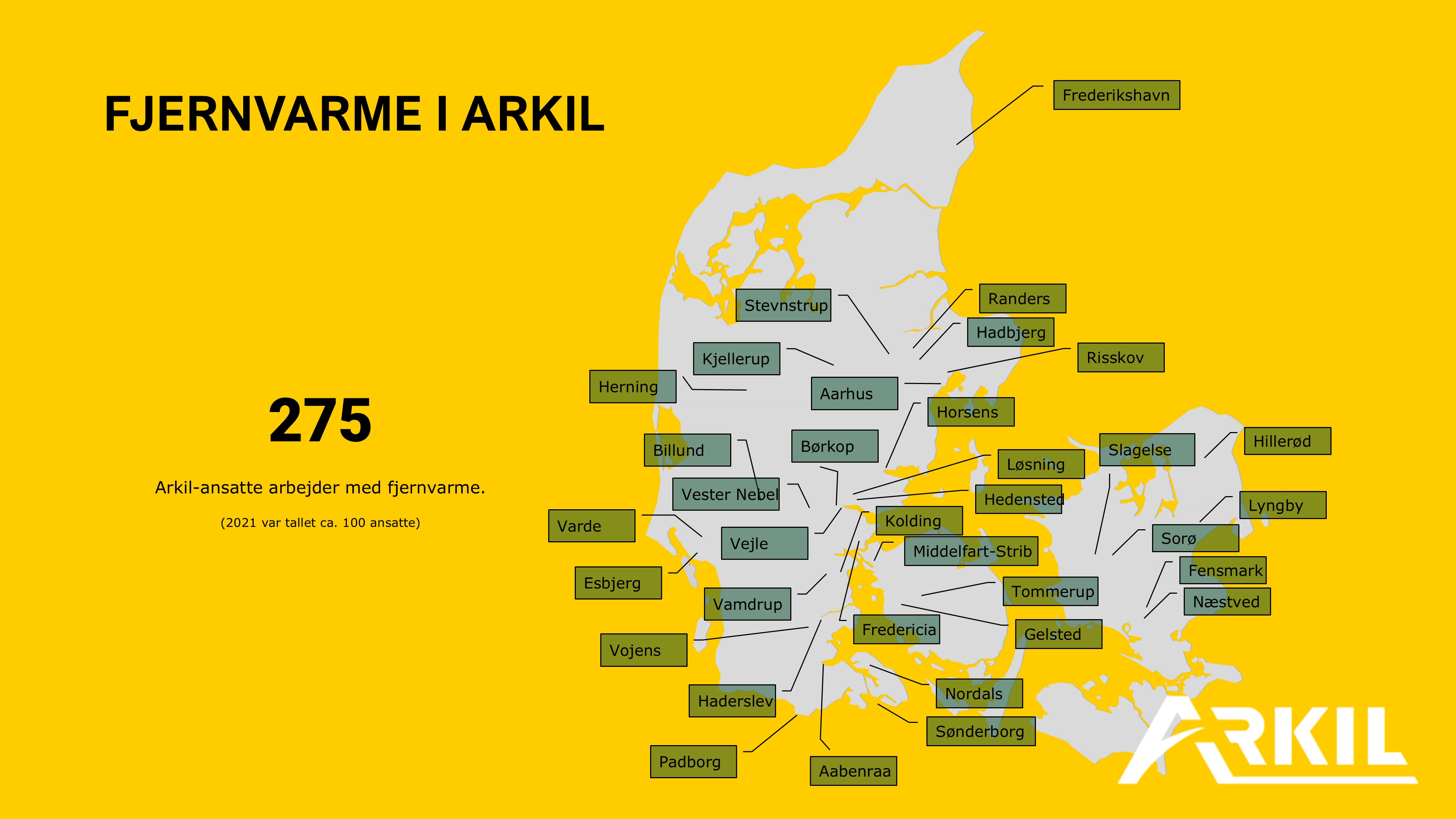 Arkil er én af Danmarks største anlægsentreprenører, og vores kompetencer inden for etablering af fjernvarme spænder over hele forsyningskæden ved varmeforsyningen. Vi har kunder over hele landet inden for både forsyningsselskaberne og en række kommunale varmeværker.