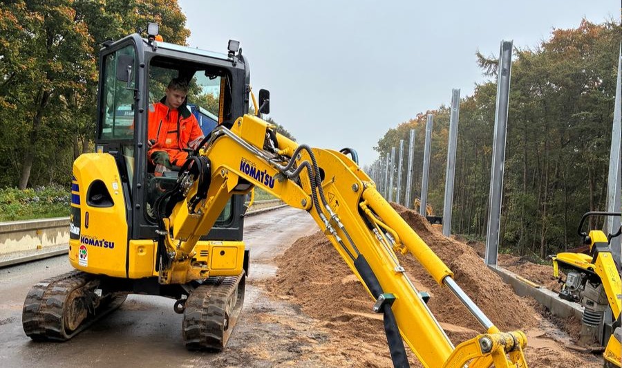 “Vi skal jo lave støjskærme, og vores arbejde lige nu er jordarbejdet – afvanding og gøre klar til beplantning,” fortæller han og kigger ud over strækningen, hvor stålsøjlerne allerede står på række.