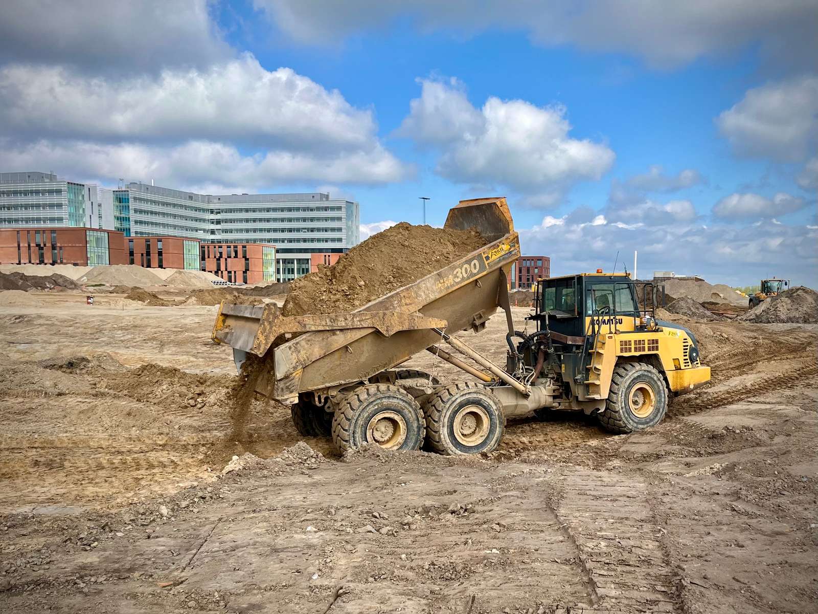 ”Der er naturligvis mange ting at vi løbende forholder os til, men pt. er den største case på projektet jordhåndtering. Vi skal over samtlige 220.000 kvartmeter, hvor soklen på byggeriet er vores entreprisegrænse” siger Allan Klingenberg, produktionschef i Anlæg Aalborg.